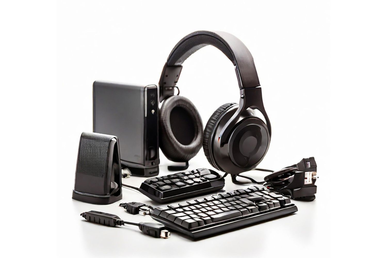 Monitores 24–27”, teclados/mouse, hubs USB-C, impresoras, UPS.
